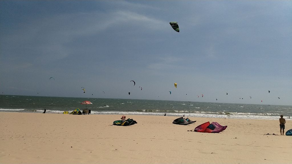 Wie Ihr sicher auf Bildern schon gesehen habt, ist es an unserem Strand immer voll von Kite-Surfern. Je nach Wind mehr oder weniger.